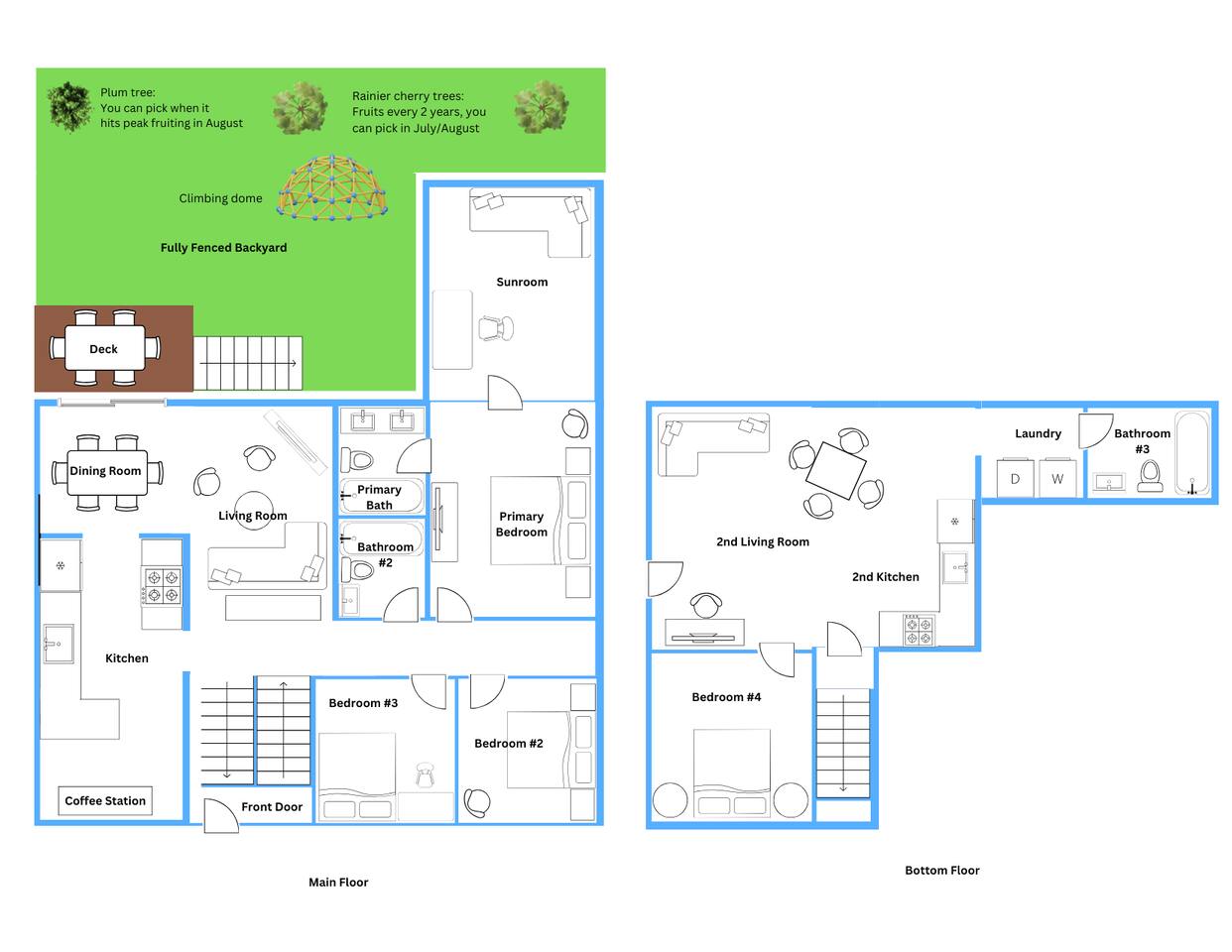 You’ll have full access to the entire house, including the outdoor deck and private backyard. The driveway is available for parking up to 2 vehicles. Note: the garage is not accessible to guests.